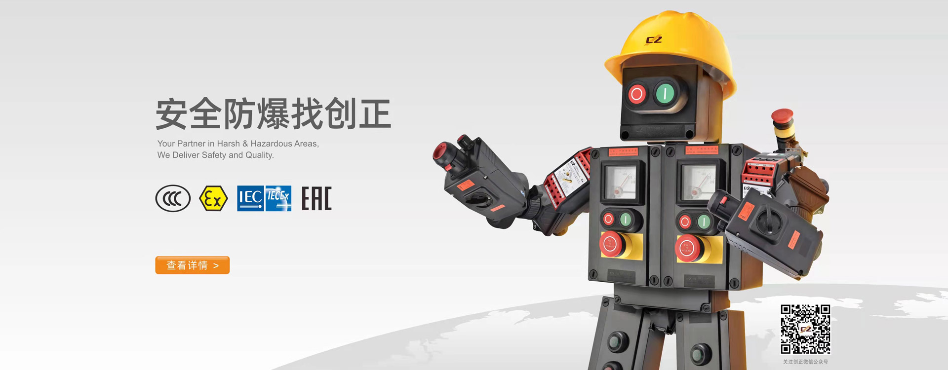 公司主營產品全面通過CCCEx防爆認證、ATEX歐盟防爆認證、IECEx防爆認證,部分產品通過EAC海關聯盟防爆認證,巴西、德國TUV等認證。